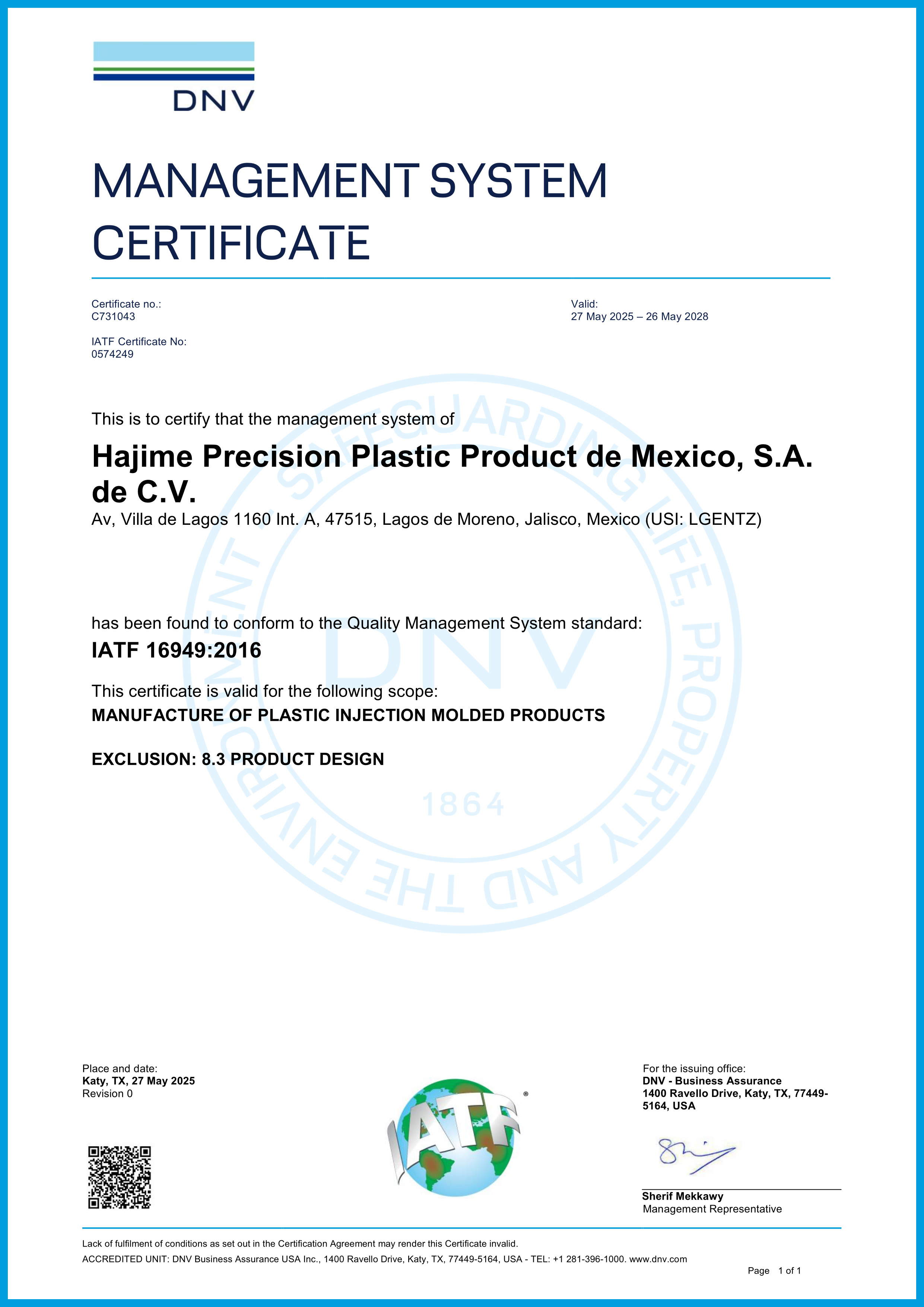 En HAJIME PRECISION PLASTIC PRODUCT DE MEXICO, S.A. DE C.V. tenemos como misión satisfacer las necesidades de nuestros clientes ofreciendo productos de calidad mediante los procesos de inyección de plástico y ensamble, superando las expectativas de todos nuestros clientes, buscando siempre la mejora continua. Además de ayudar a construir una sana y productiva sociedad a través de la participación de todos nuestros colaboradores.