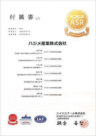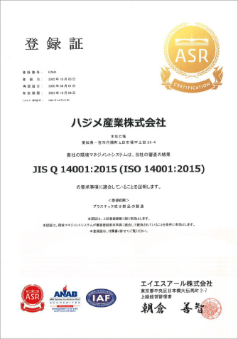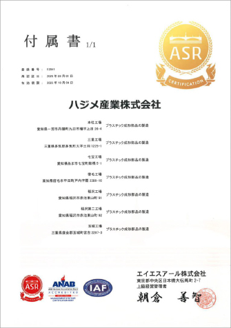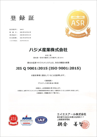 Además de los certificados mencionados anteriormente, en 2018, nuestra fábrica matriz Hajime Sangyo Co. Ltd. ha sido seleccionada como una de las 174 nuevas empresas en Chubu (región central de Japón) galardonada como “Futura empresa líder de la región" por parte del Ministerio de Economía, Comercio e Industria en Japón.